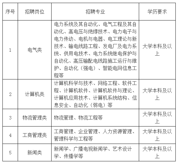 南網(wǎng)物資公司預(yù)計(jì)招聘約12人,招聘崗位及專(zhuān)業(yè)見(jiàn)附件1。