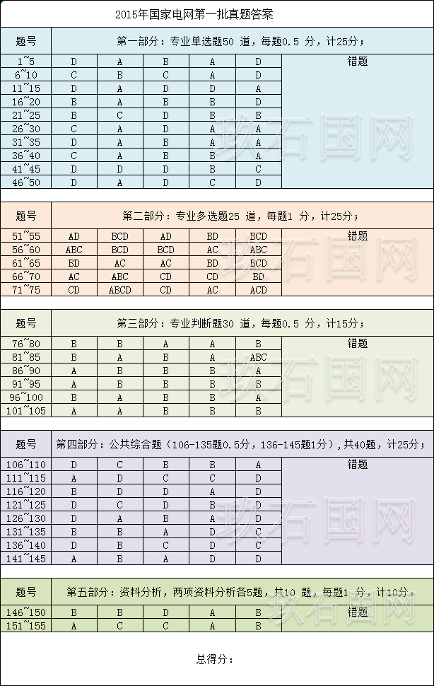 2015年國家電網(wǎng)招聘真題電工類本科(答案)——(1-155)