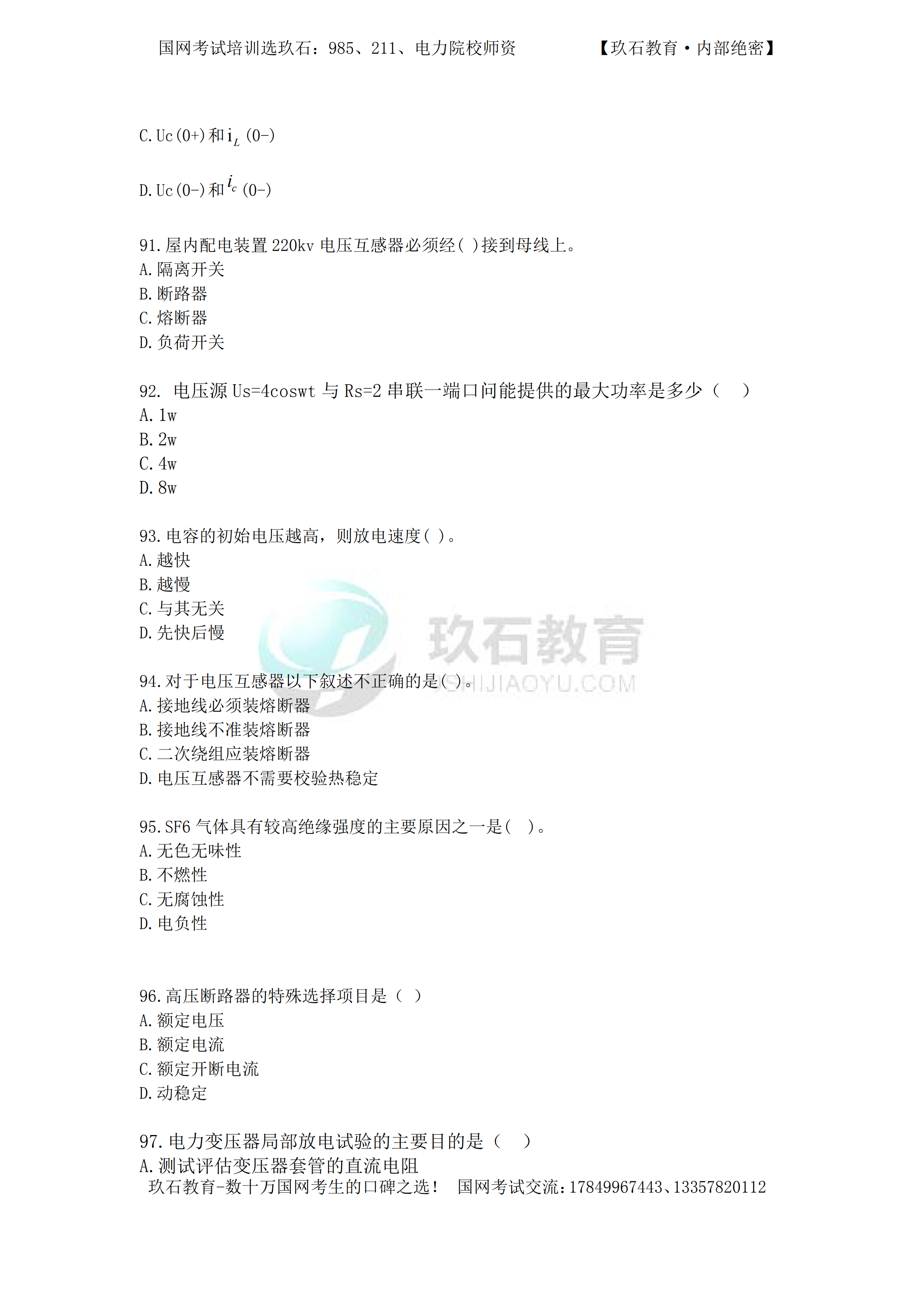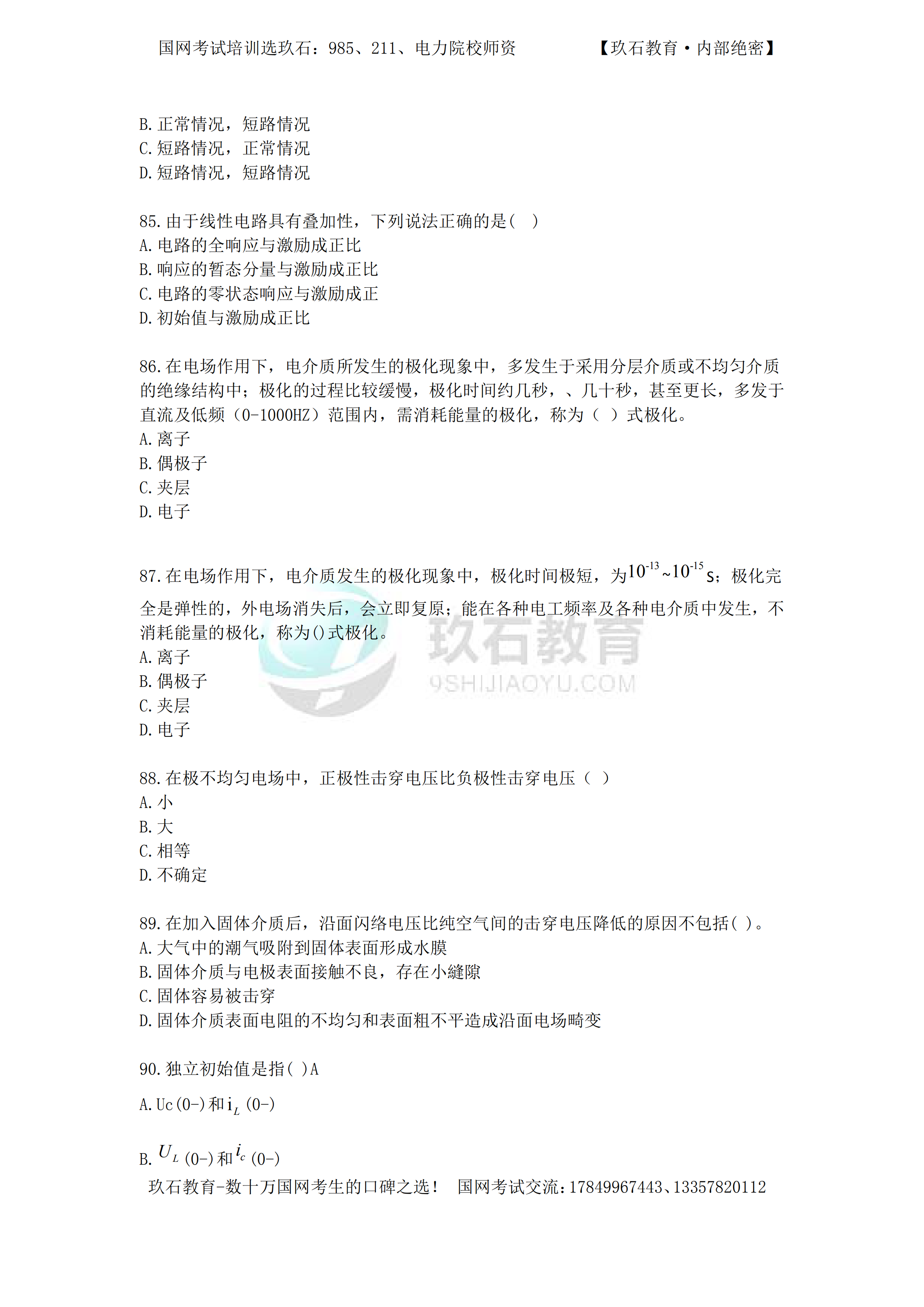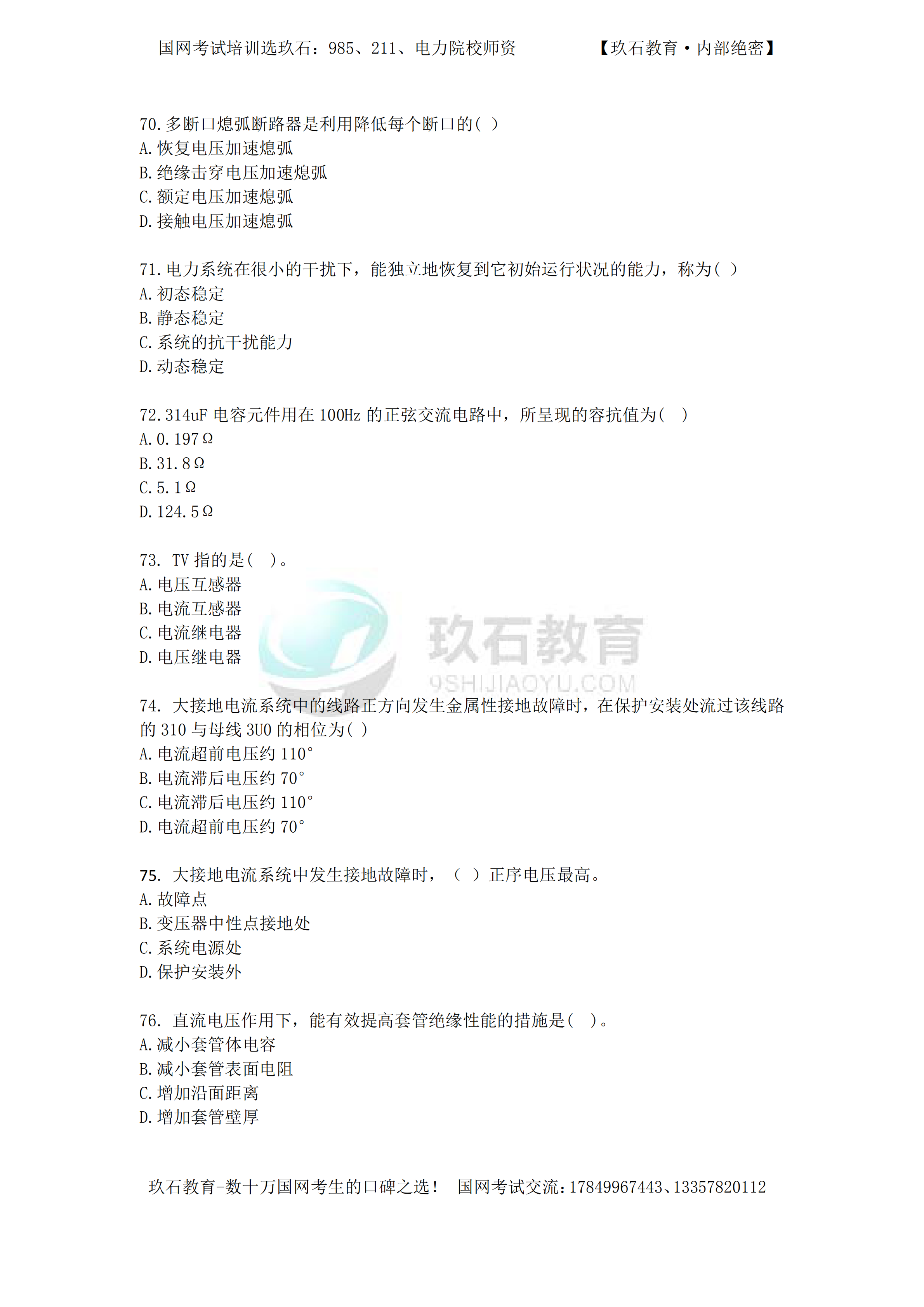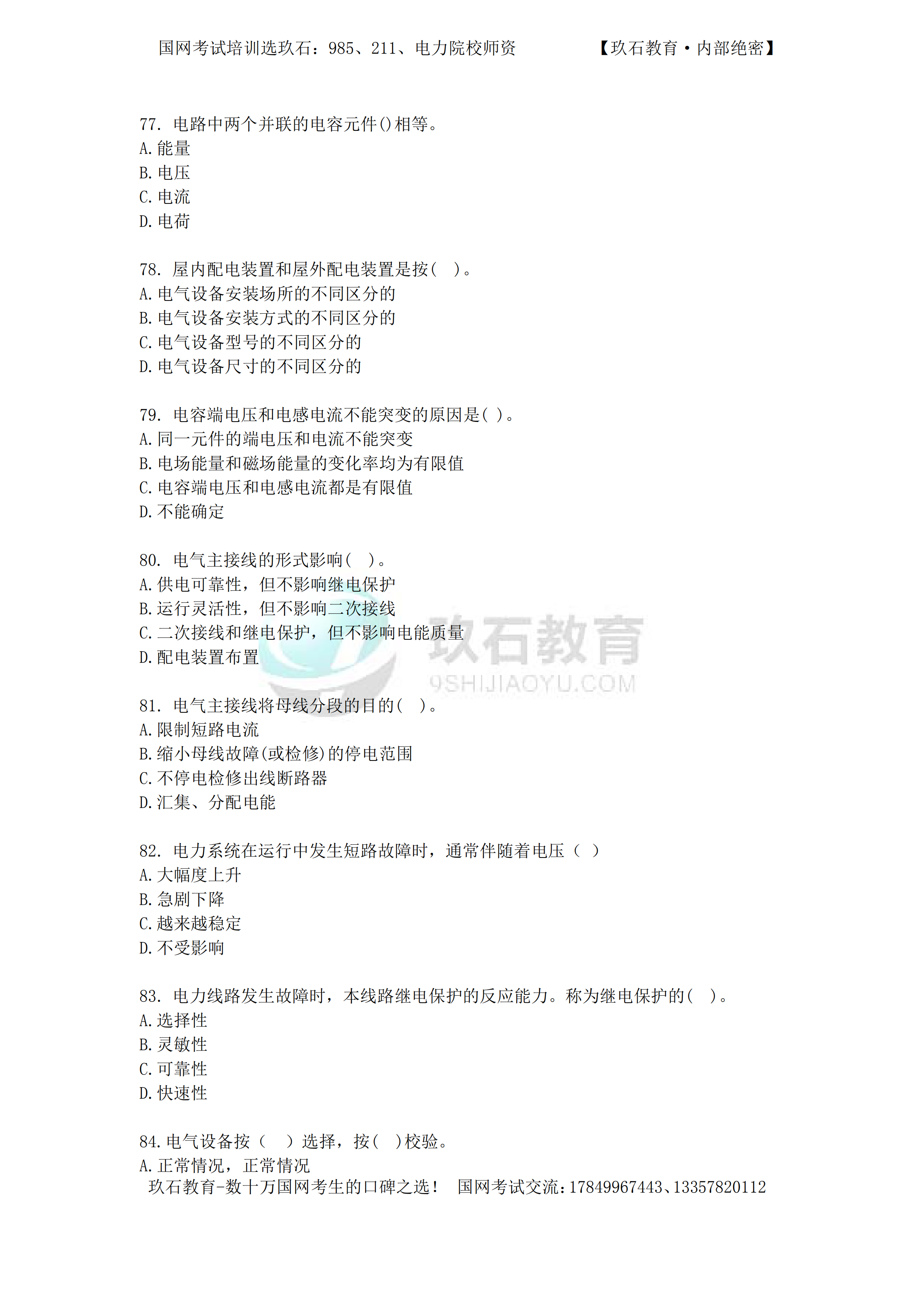 2016年國家電網(wǎng)招聘真題電工類本科(三)——(70-104)