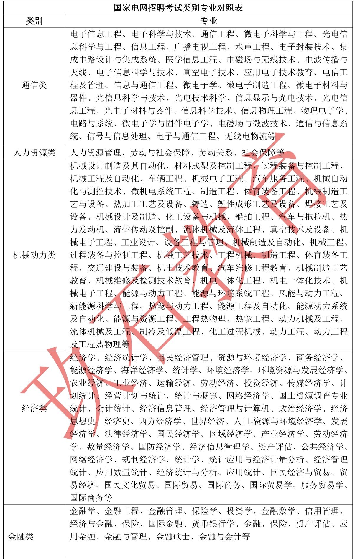 2019國家電網(wǎng)招聘考試類別專業(yè)對照表